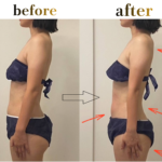 内臓の位置や骨盤の傾きが整うことで、前に出て見えていた下腹がスッと引き込みました。